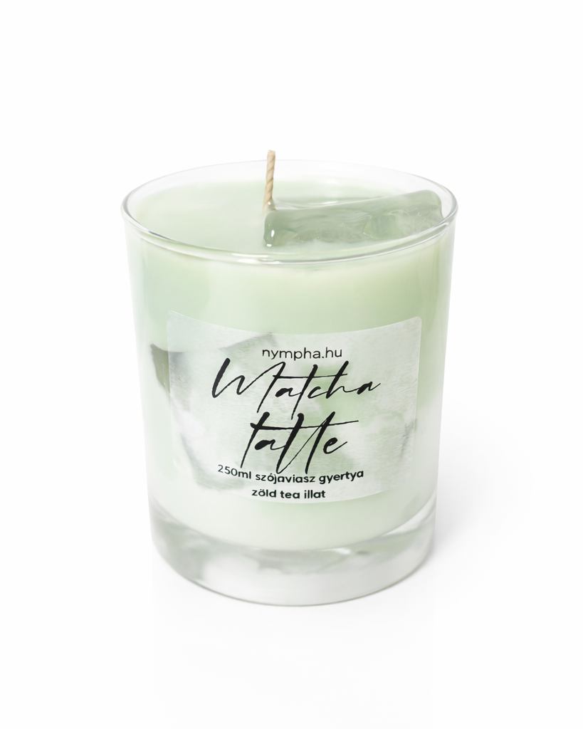A Matcha Latte illatgyertya lágy, krémes zöld tea aromájával tölti meg a teret, mintha egy frissen elkészített, habos matcha lattét kortyolgatnál egy csendes délutánon. Nemcsak illatával, hanem látványával is különleges élményt nyújt.